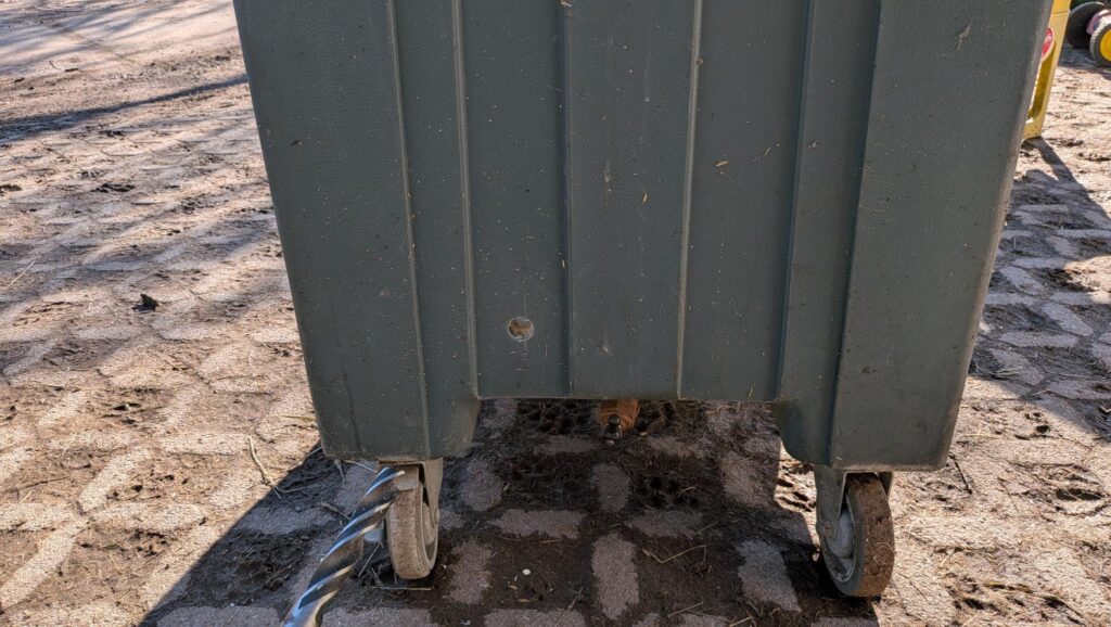 Zuerst wird, passend zur 1/2-Zoll Tankdurchfuehrung, ein Loch in die Box gebohrt.